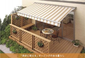 そこで出てくるのが、電動式オーニング。風や雨を自動関知して、人が居なくても収納してくれるんだそうです。