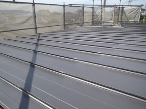 あと、屋根です。これは昨日筋が通っていた所の上に綺麗に張ってありました。