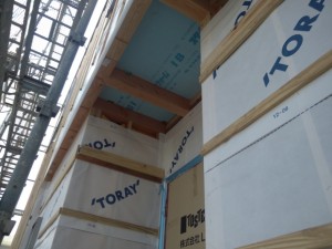 現場は玄関の軒天部分を作ってるんだそうです。