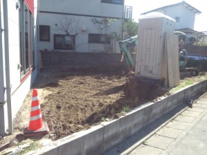 前の家の解体の際に、解体ガラが混じってるらしいので、その分をすき取って、新しく綺麗な真土を入れてもらうことに。