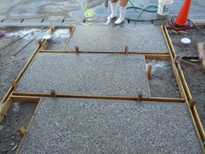 玄関前は飛び石みたいにして、コンクリートを洗い出しにしてもらいました。
